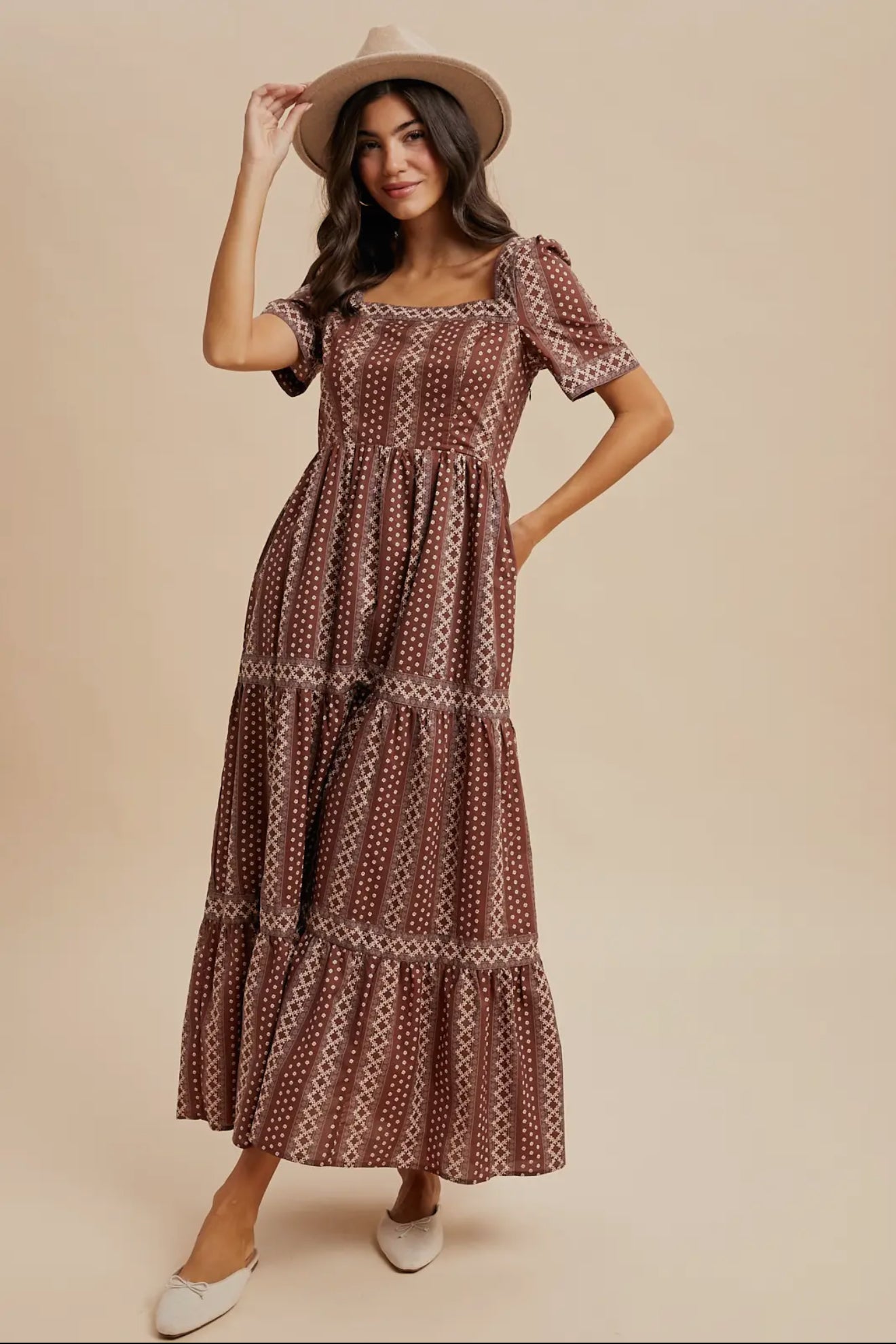 Damaris maxi dress in brown multi