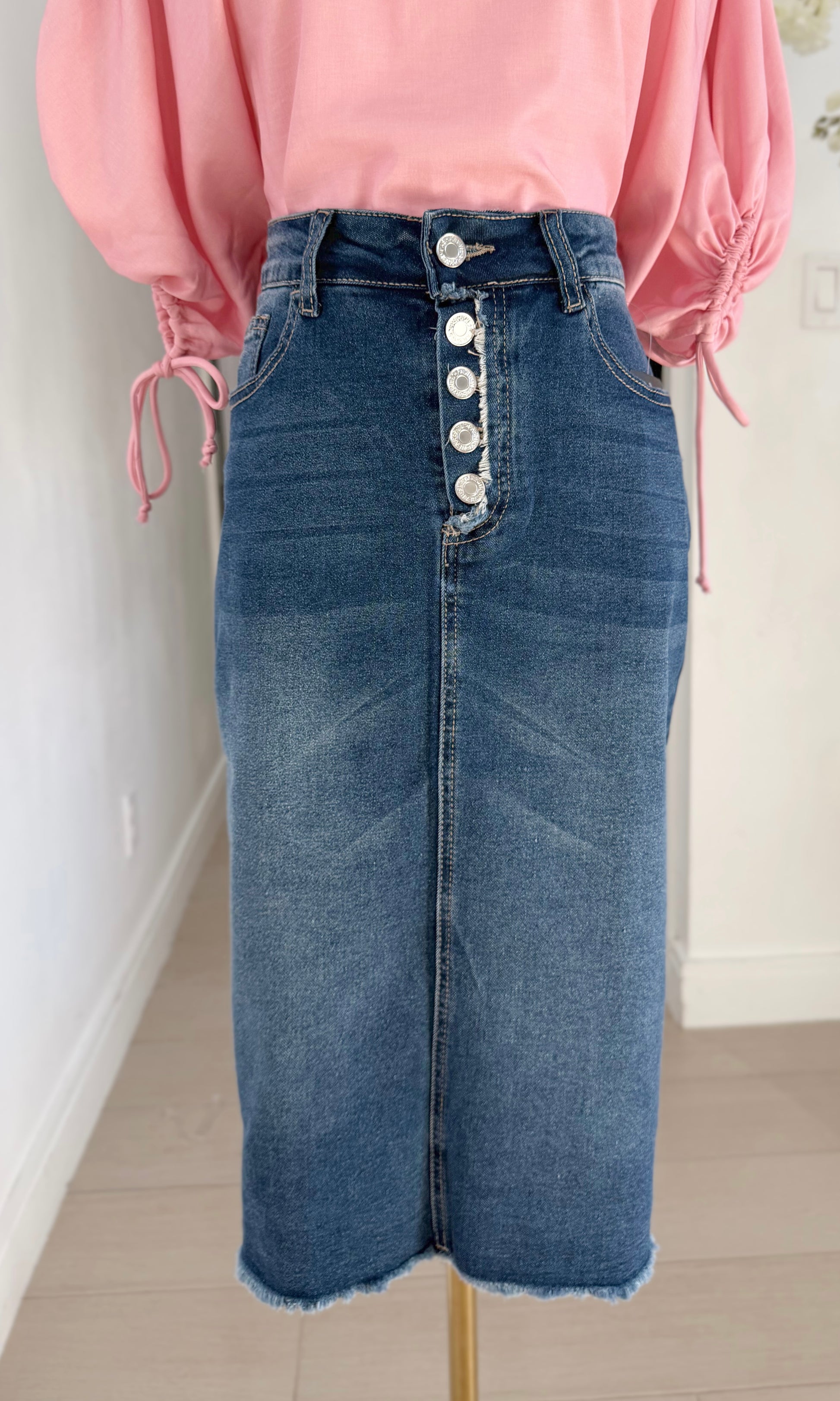 Be-Girl - stretch denim middle-length pencil skirt