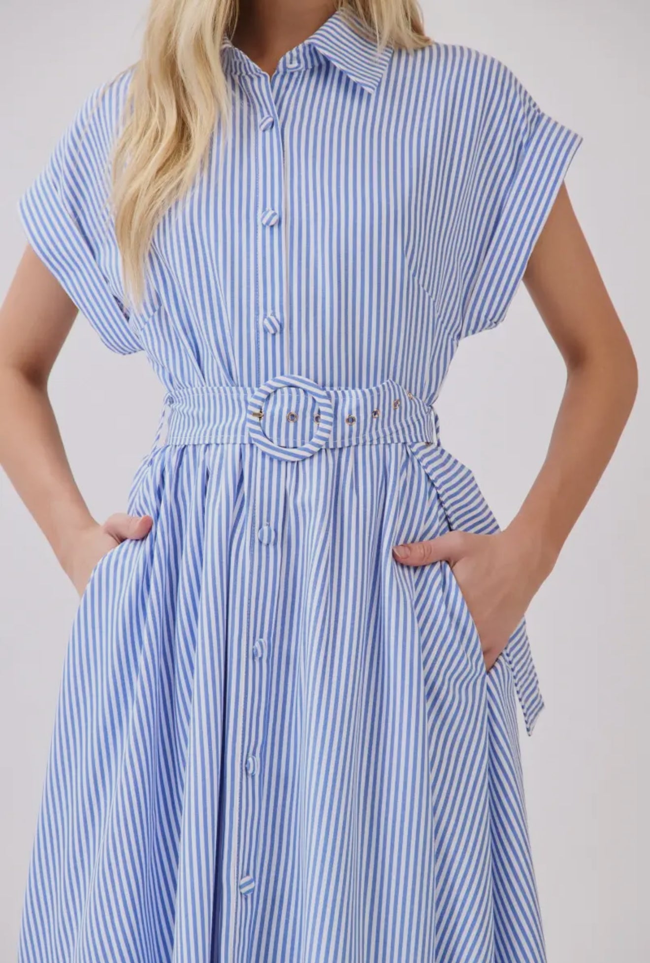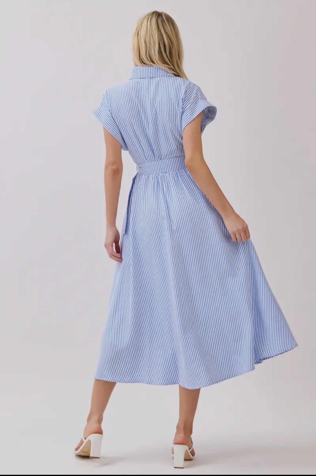 Sofía Striped Short Sleeve Button Down Maxi Dress